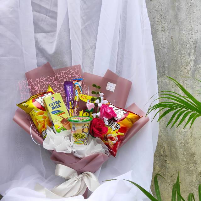 Rekatkan snack pada tusuk sate dengan menggunakan selotip atau double tape. Jika kamu merasa memberi buket bunga terlalu biasa. Karena kreasinya yang unik dan bisa diisi dengan snack . Buket snack banjarnegara kami menyediakan buket snack murah, simple, menarik dan sederhana tersedia berbagai macam snack dari mulai coklate, chiki, wafer, . Air balloon snack bouquet for graduation ide hadiah kreatif bunga kertas.